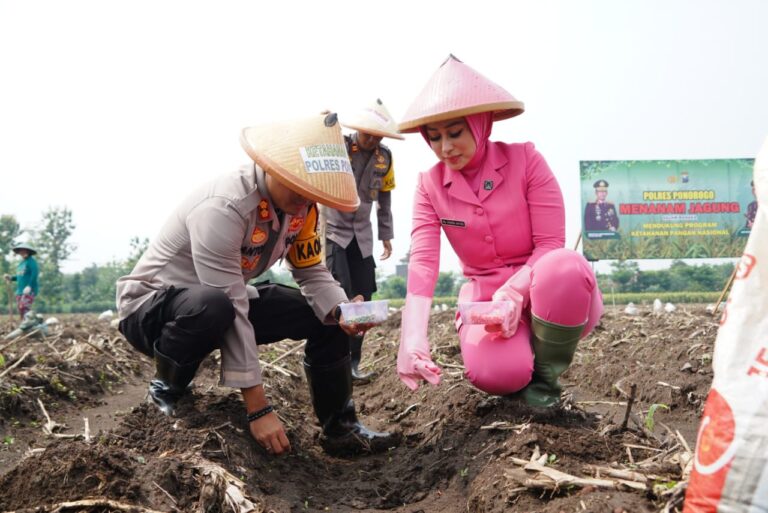 Gelorakan Swasembada Pangan, Polres Ponorogo Bersama Kelompok Tani Tanam Jagung Reog 234 Bhayangkara
