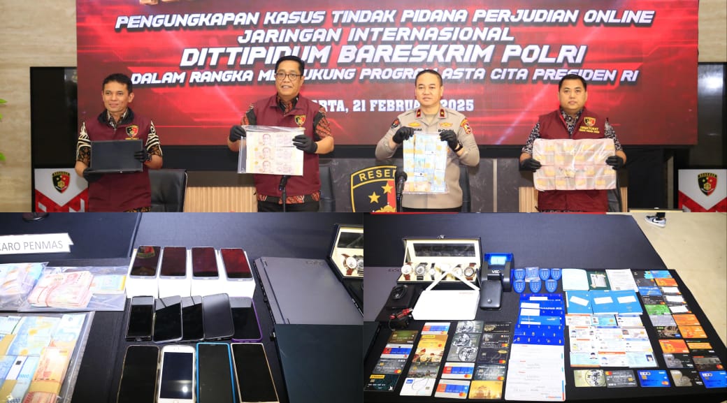 Direktur Tindak Pidana Umum (Dirtipidum) Bareskrim Polri Brigjen. Pol. Djuhandani Rahardjo Puro mengatakan, kesembilan tersangka ditangkap di dua wilayah berbeda. Mereka mengoperasionalkan judi online (judol) jaringan internasional, dengan situs 1XBET yang servernya berada di Eropa.