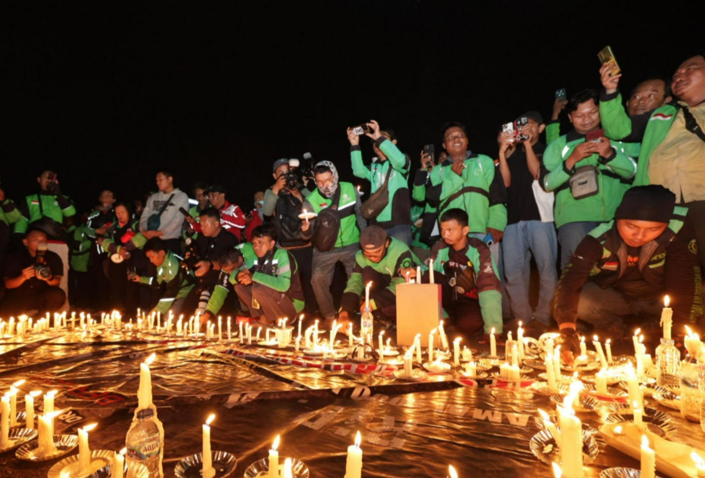 Driver Ojol Gelar Aksi Damai 1000 Lilin di Depan Mapolda Jatim