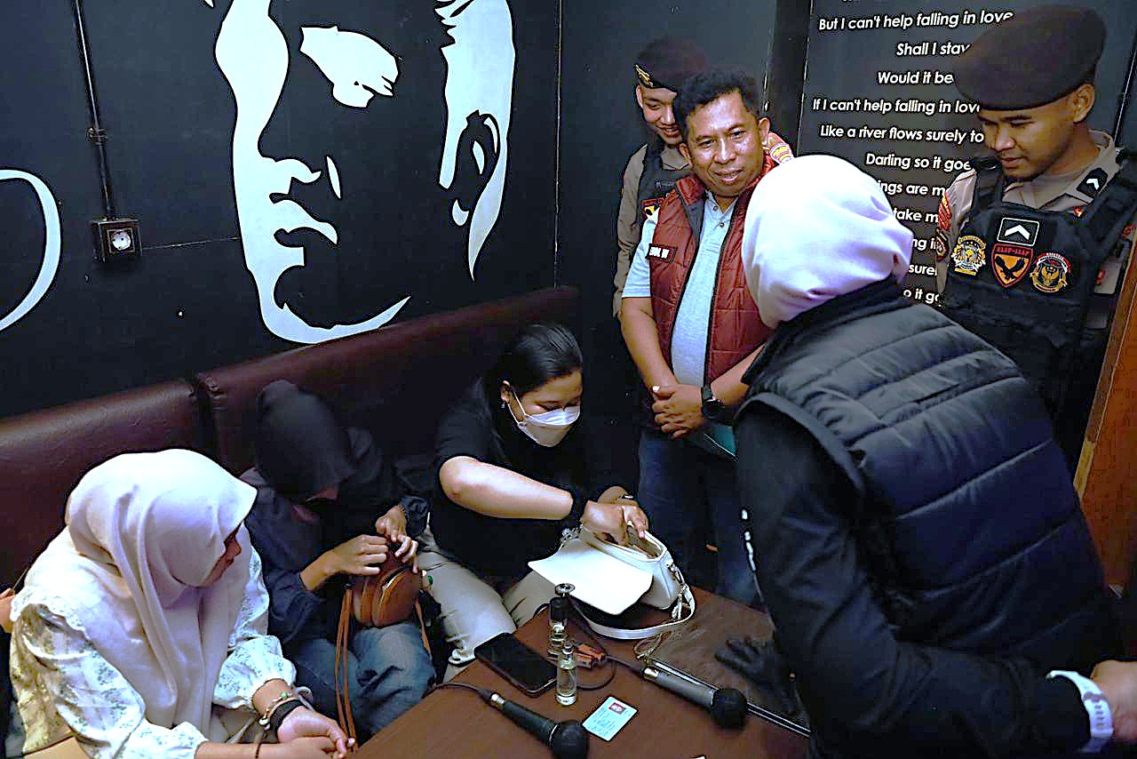 Di lokasi itu, dengan tetap mengedepankan sikap humanis, petugas melakukan pemeriksaan badan, barang bawaan, serta tes urine terhadap pengunjung dan karyawan.