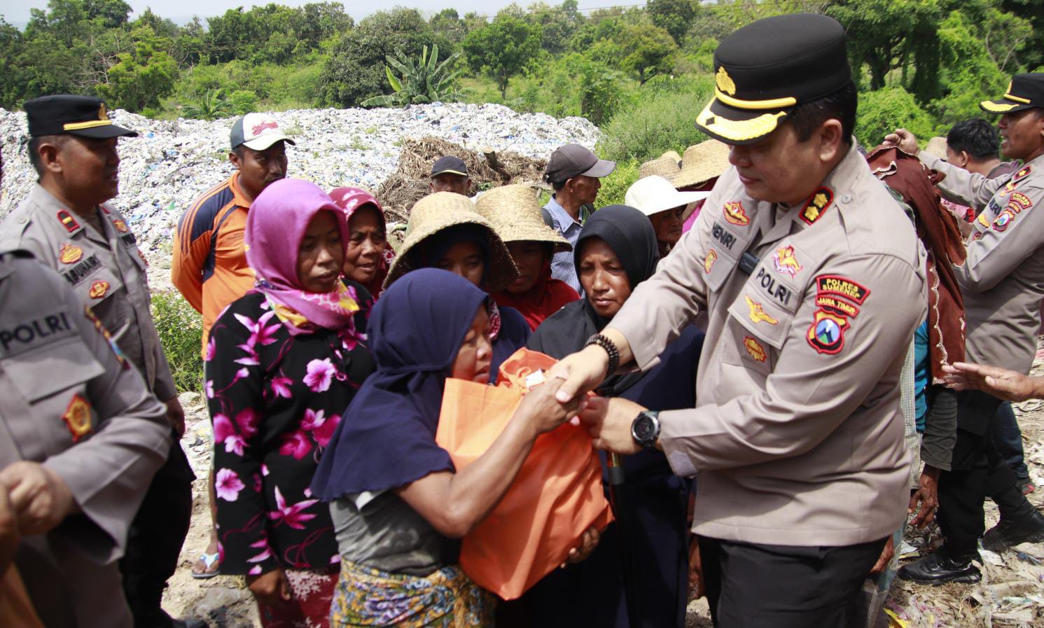 SUMENEP – Kapolres Sumenep, AKBP Henri Noveri Santoso, S.H., S.I.K., M.M., menunjukkan kepedulian terhadap masyarakat kurang mampu dengan melakukan bakti sosial di kawasan Tempat Pembuangan Akhir (TPA), Jumat (11/04/2025).