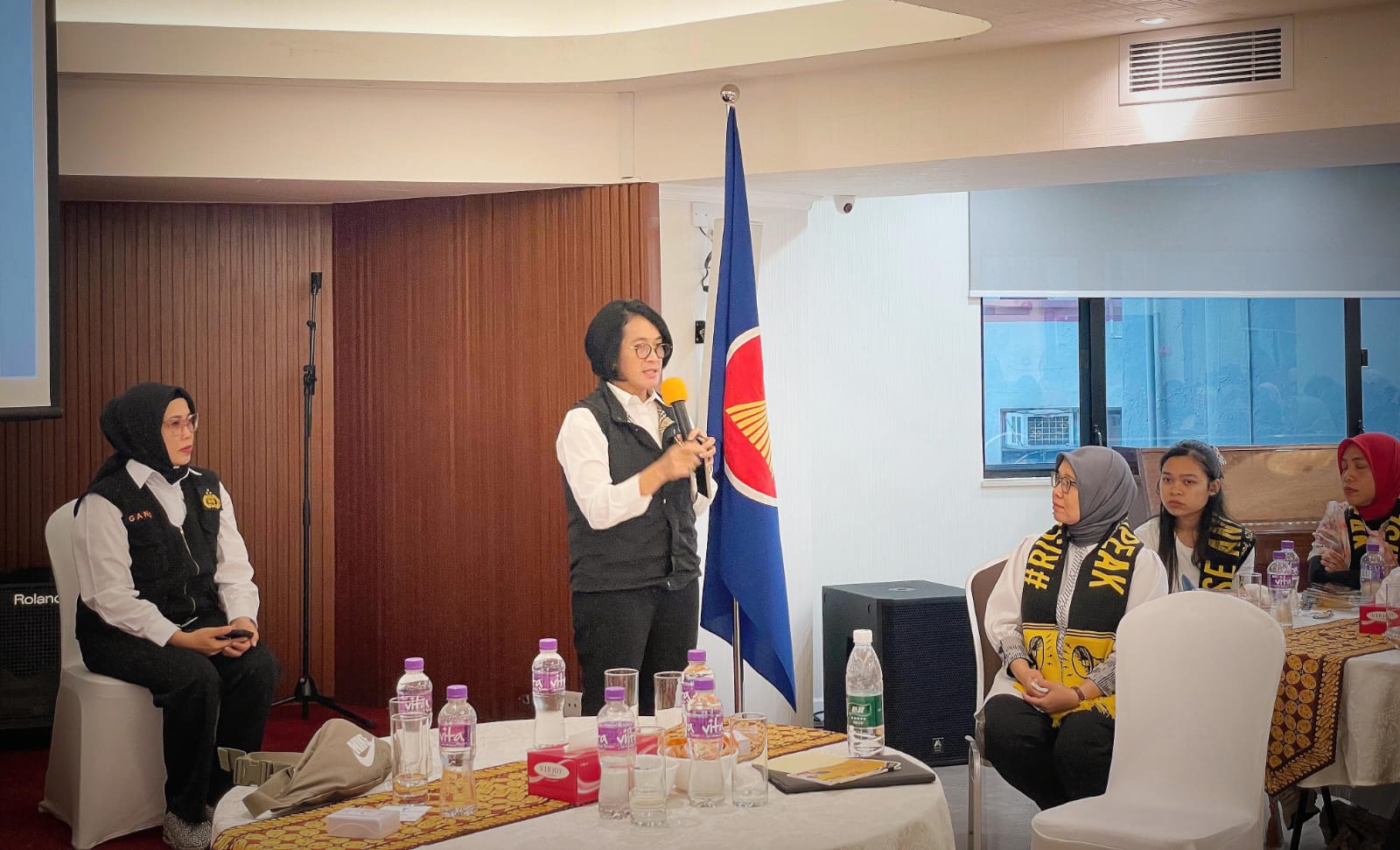 – Kasubdit II PPA PPO Bareskrim Polri membawakan materi mengenai penanganan kasus TPKS serta membuka forum konsultasi hukum untuk para PMI.