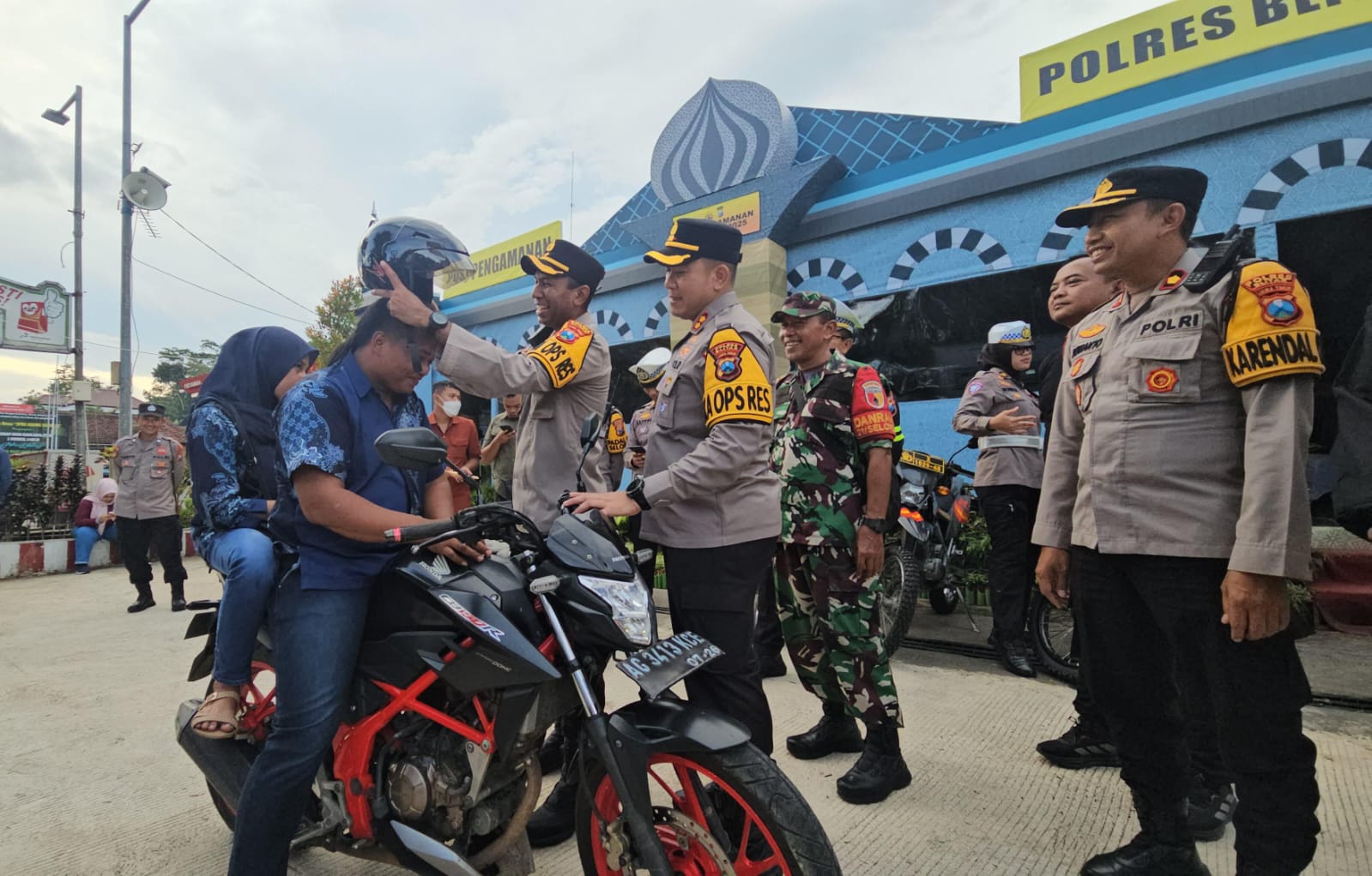 Kapolres Blitar Berbagi Helm Gratis Saat Pantau Arus Balik Lebaran 2025