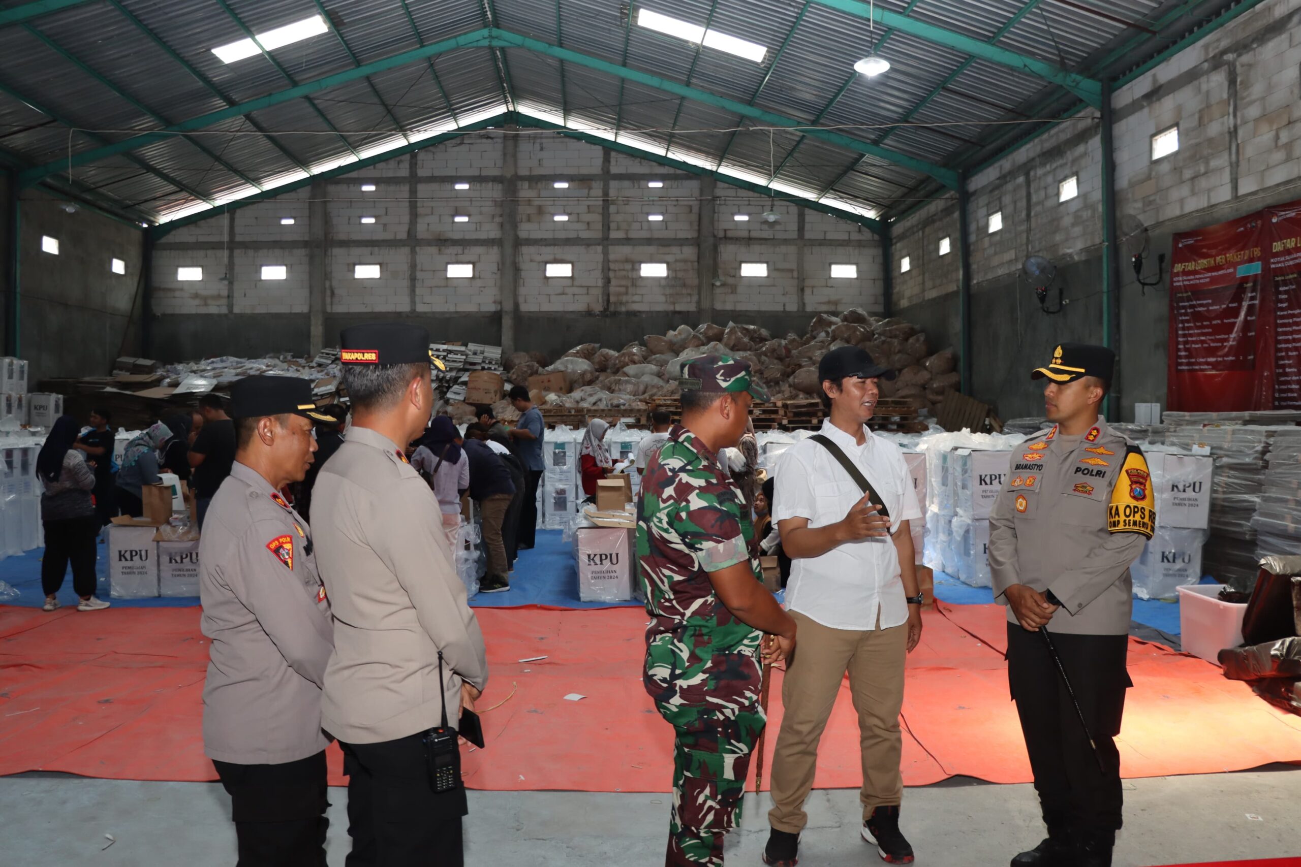 Menjelang tahapan pencoblosan Pemilihan Kepala Daerah pada Pilkada 2024, Kapolres Kediri Kota AKBP Bramastyo Priaji, bersama Dandim 0809 Kediri Letkol Inf. Aris Setiawan, S.H. melakukan pengecekan terhadap kesiapan pengelolaan logistik Pilkada yang dikelola oleh Komisi Pemilihan Umum (KPU) Kota Kediri.