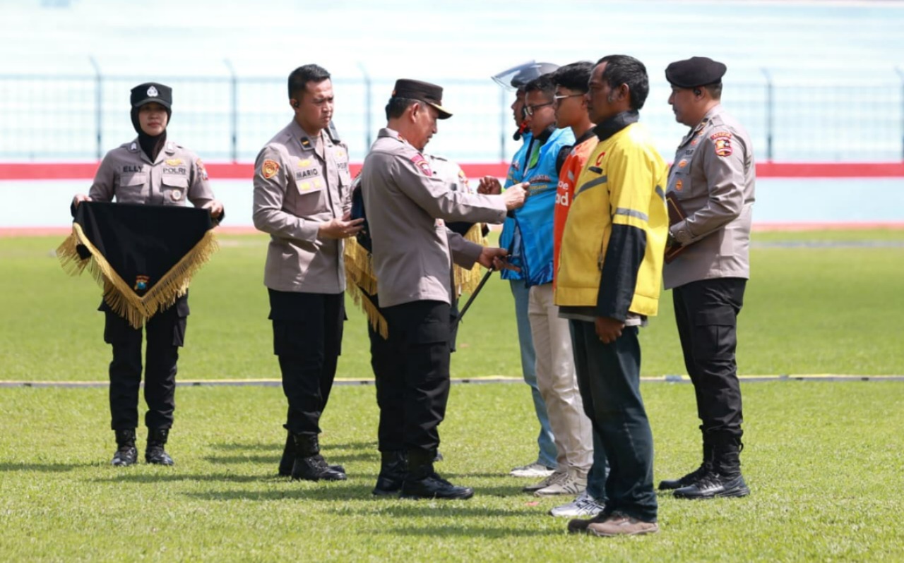Ribuan peserta tampak memenuhi lapangan apel dengan seragam khas aplikator masing-masing, menampilkan semangat kebersamaan dan komitmen tinggi untuk mendukung terciptanya situasi kamtibmas yang aman dan kondusif.