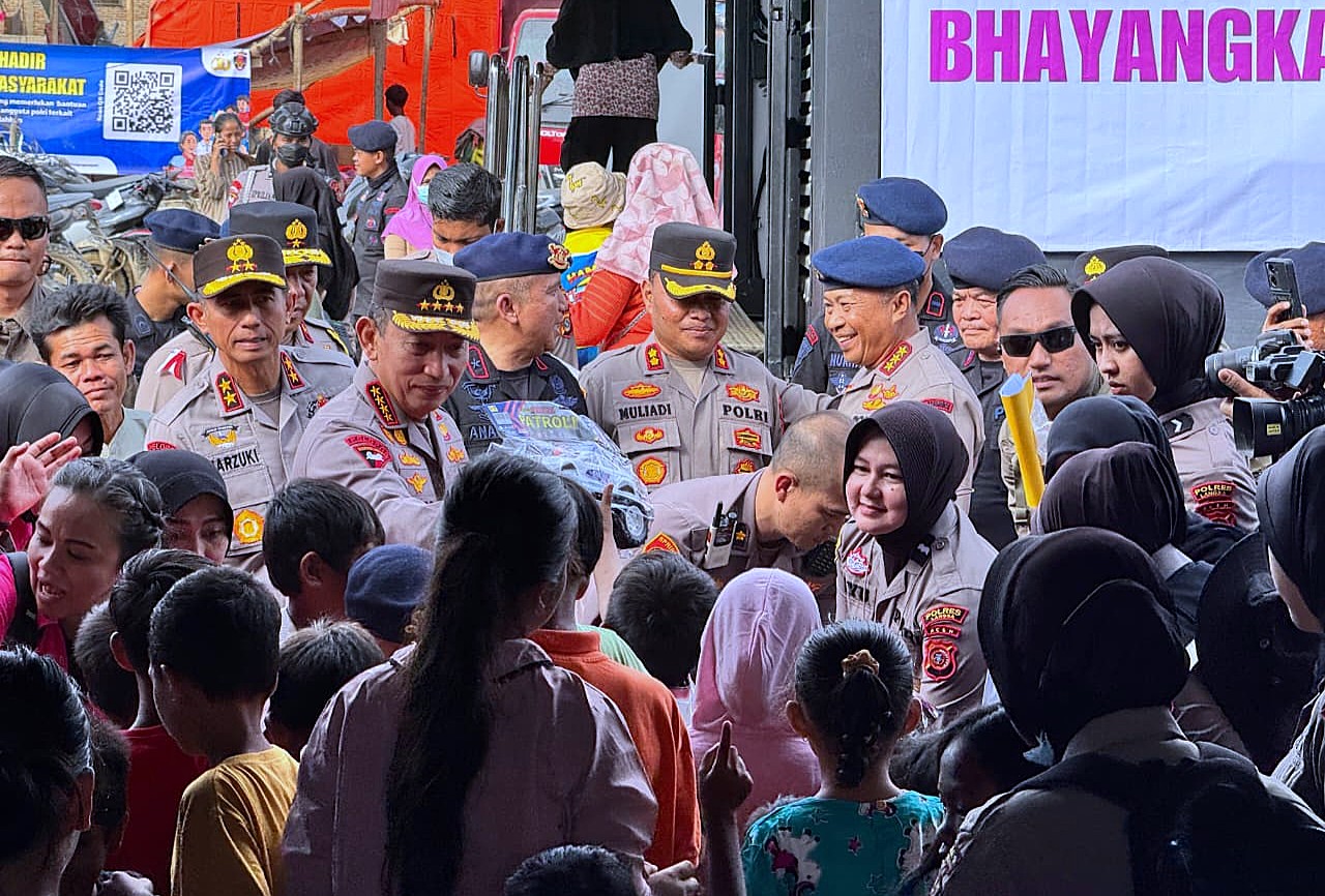Bantuan dari Ibu Ketum Bhayangkari Masker (300 box), kasa (5 koli), Obat-obatan (1.745 box), nasi instan (10 dus), sajiku (6 dus), bumbu racik (3 dus), bumbu dapur bubuk (2 dus), royco rasa sapi (10 dus), bumbu opor ayam (1 dus), royco rasa ayam (10 dus), promina (2 dus), nyam-nyam (4 dus), top (2 dus), nabati (3 dus), rokok (1.300 bungkus), mukena (200 pcs), selimut (300 pcs), tas selempang (50 pcs), dan seragam sekolah (591 pcs).