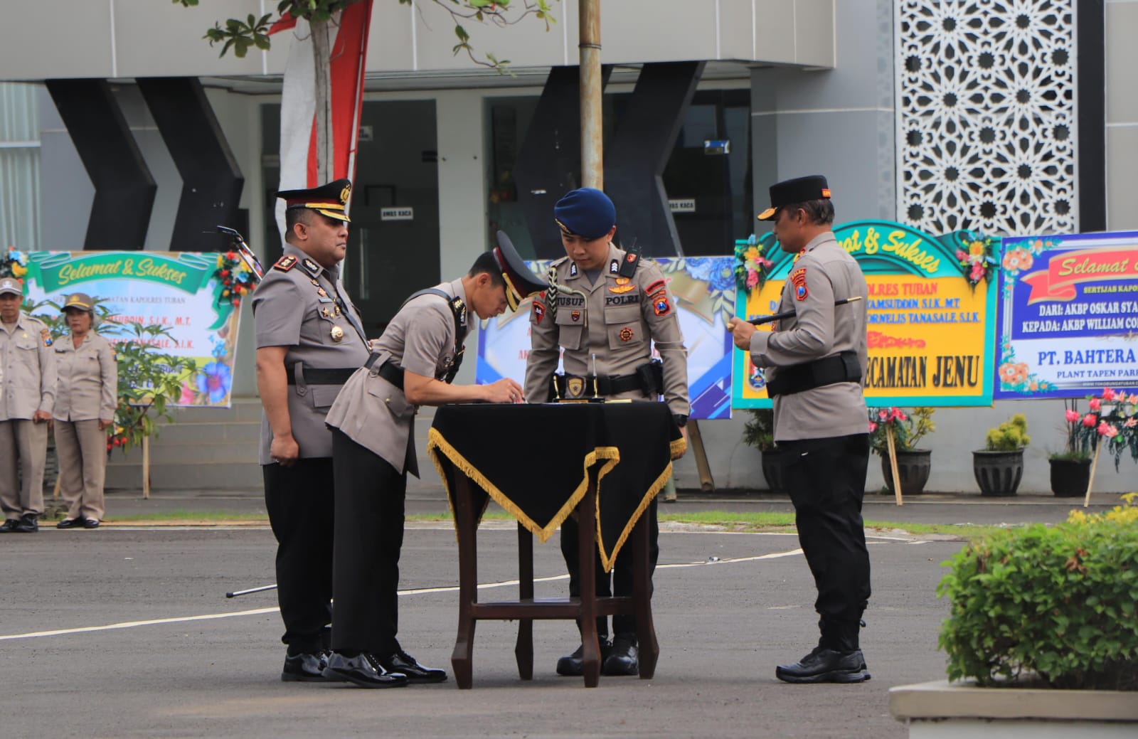 Dalam upacara tersebut, jabatan Kapolres Tuban resmi diserahterimakan dari AKBP Oskar Syamsuddin, S.I.K., M.T., kepada AKBP William Cornelis Tanasale, S.I.K.