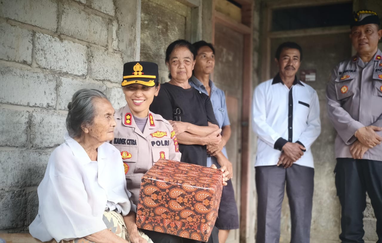 Dalam kesempatan tersebut, Kapolres Jembrana menyerahkan bingkisan bantuan kepada warga lansia, salah satunya Ni Wayan Lunek, sebagai wujud perhatian dan dukungan terhadap kebutuhan masyarakat.