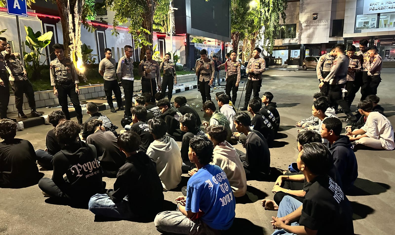 34 pemuda diamankan di ITC Mega Grosir (Wilayah Polsek Simokerto), 17 pemuda diamankan di wilayah hukum Polsek Bubutan.
