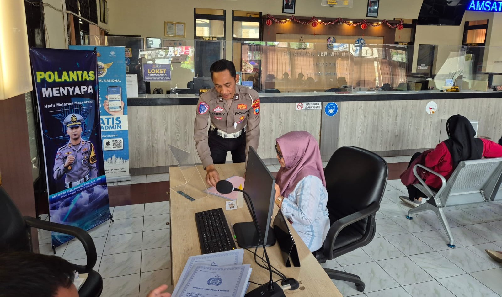 “Polantas Menyapa ini terus kami gencarkan sesuai perintah pimpinan, antara lain pelayanan berjalan sesuai standar operasional prosedur, serta memberikan pelayanan yang baik kepada masyarakat agar proses administrasi kendaraan bermotor sejak awal proses,” jelas Aiptu Dedy Setio, Selasa (13/1/26).