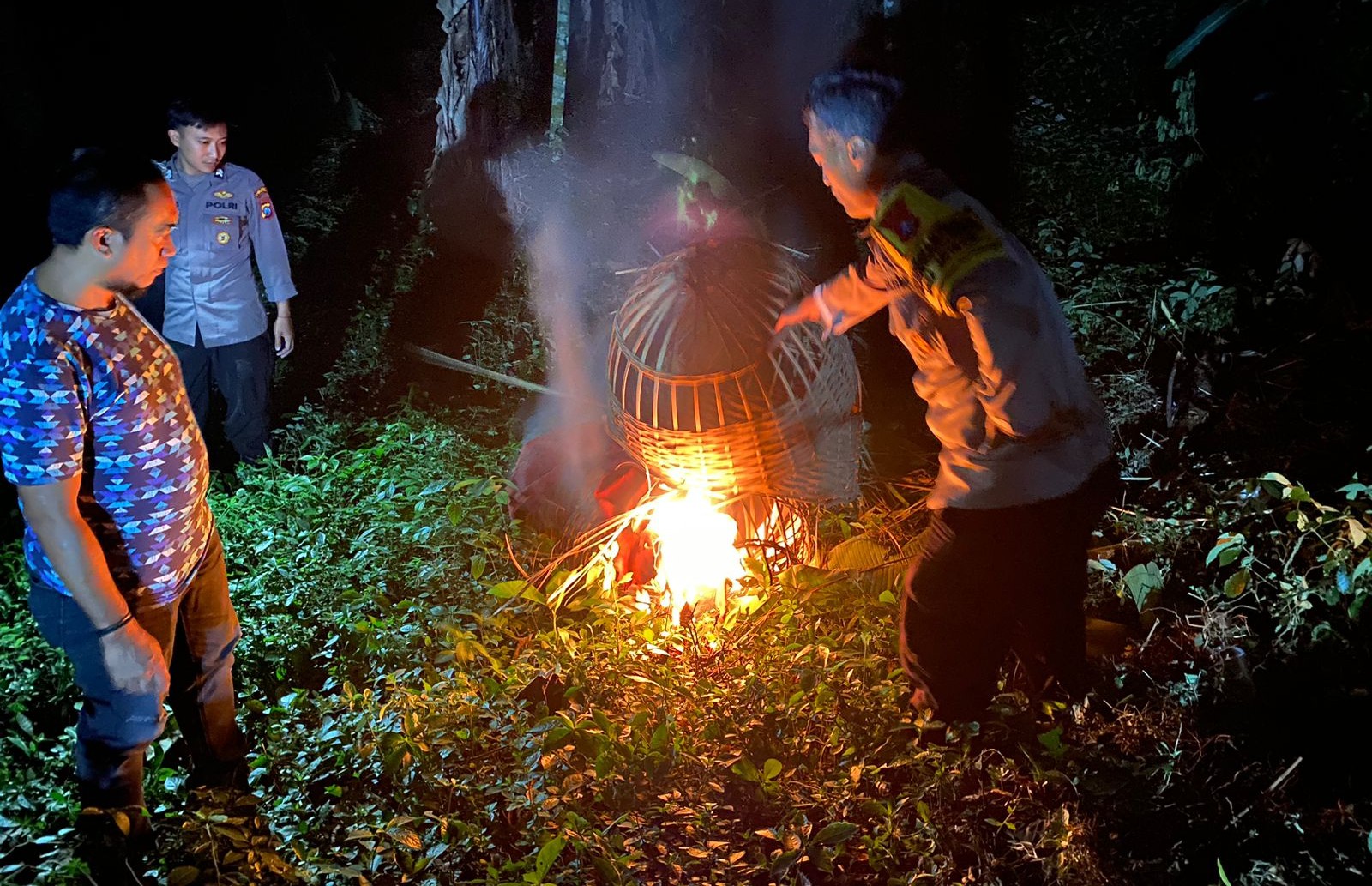 Selanjutnya, petugas langsung melakukan pembongkaran dan pembakaran sarana tersebut.