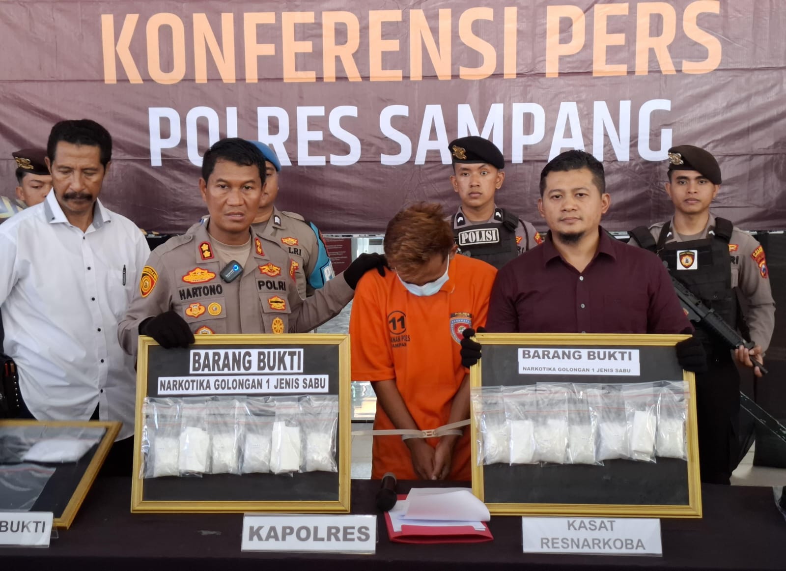 Kapolres Sampang AKBP Hartono S.Pd, MM saat konferensi pers mengatakan bahwa sabu hampir 1 kilogram tersebut sudah dibungkus dalam 9 buah plastik bening.
