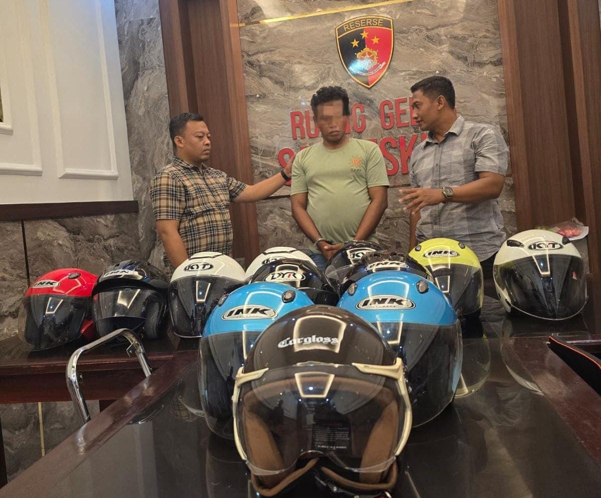 “Dari tersangka disita 3 buah helm dan 1 sepeda motor dan 9 helm lainnya sudah dijual oleh pelaku berhasil disita dari para pembeli di beberapa lokasi,”terang AKP Agung Hartawan, Selasa (22/4/2025).