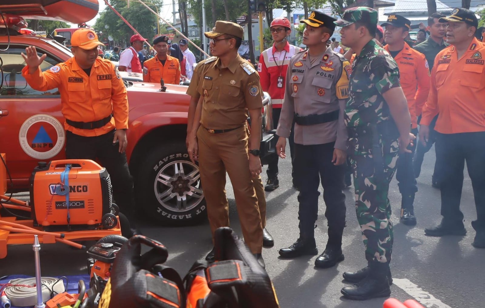 Ratusan personel tersebut disiapkan untuk penanganan bencana berkolaborasi dengan TNI, BPBD dan para relawan.