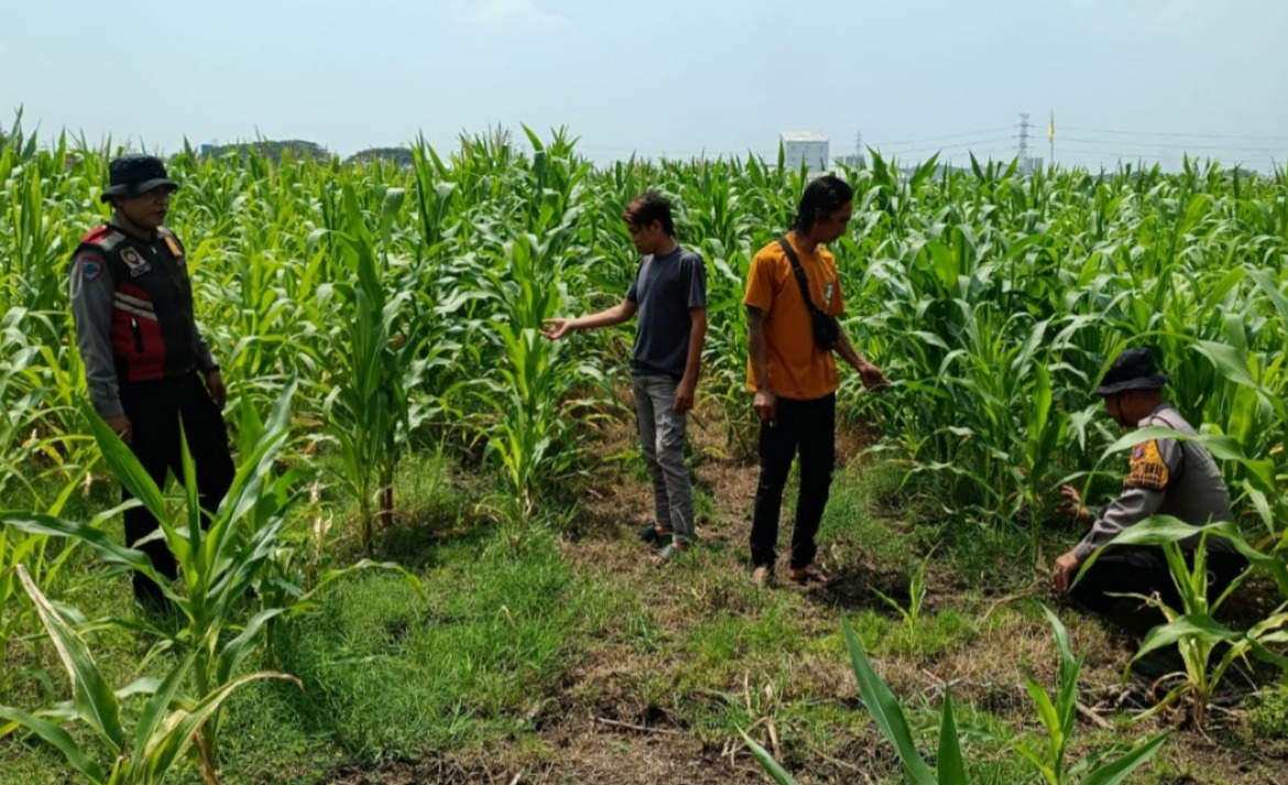 Pada Senin (30/3/2026), Kanit Binmas Polsek Krembung Aiptu Adin melaksanakan pengecekan perkembangan tanaman jagung di lahan Desa Tanjekwager, Kecamatan Krembung, Kabupaten Sidoarjo.