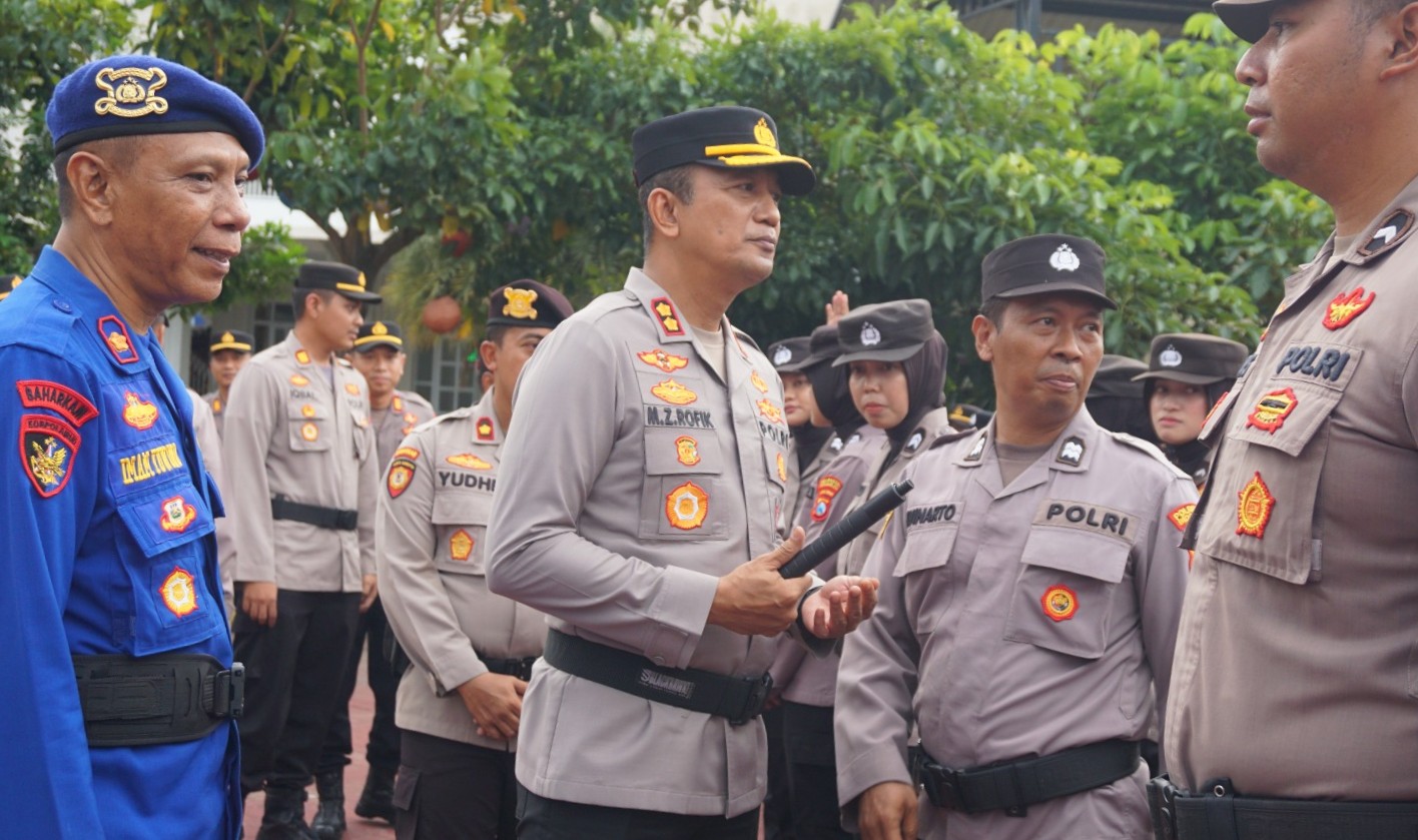 Wakapolresta Sidoarjo juga melakukan pengecekan kesiapan 1.200 personel yang akan diturunkan serta sarana maupun prasarana yang akan digunakan nanti.