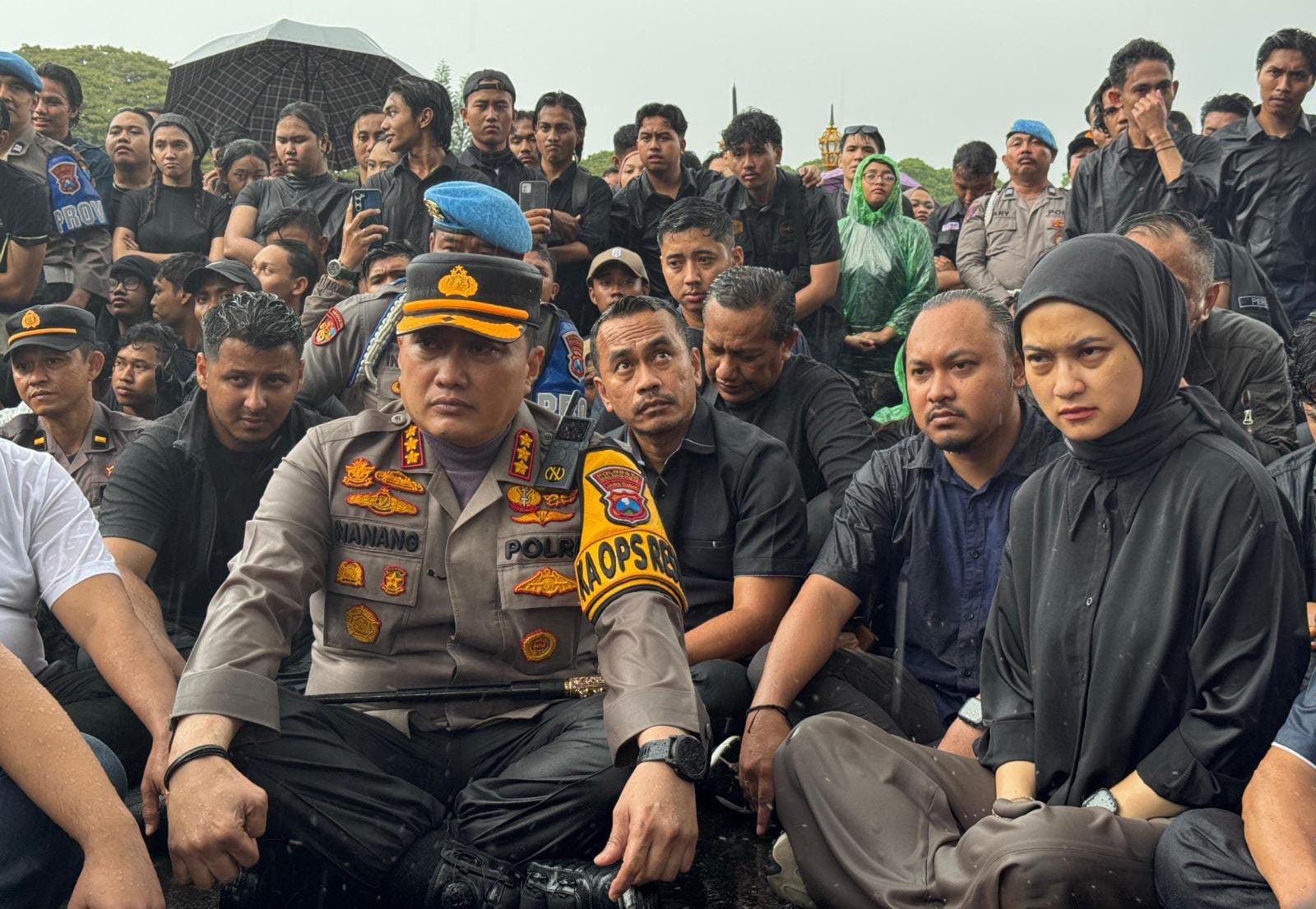 Tak hanya itu, Kombes Pol Nanang juga duduk bersila bersama Ketua DPRD Kota Malang yang basah kuyup di tengah kerumunan massa. Dengan penuh empati, ia mendampingi jalannya dialog antara mahasiswa dan perwakilan legislatif.