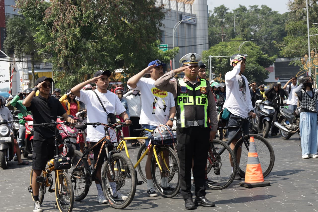 Satlantas Polresta Malang Kota Hentikan Arus Lalu Lintas, Ajak Warga Hormat Bendera di Persimpangan Kota