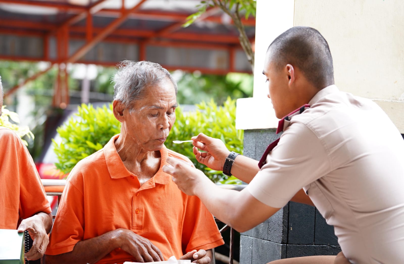 JAKARTA – Sejumlah Taruna Akademi Kepolisian mengadakan kegiatan bakti sosial di Dinas Sosial Rumah Perlindungan Lanjut Usia, Jakarta Barat, pada Senin (12/5/2025).